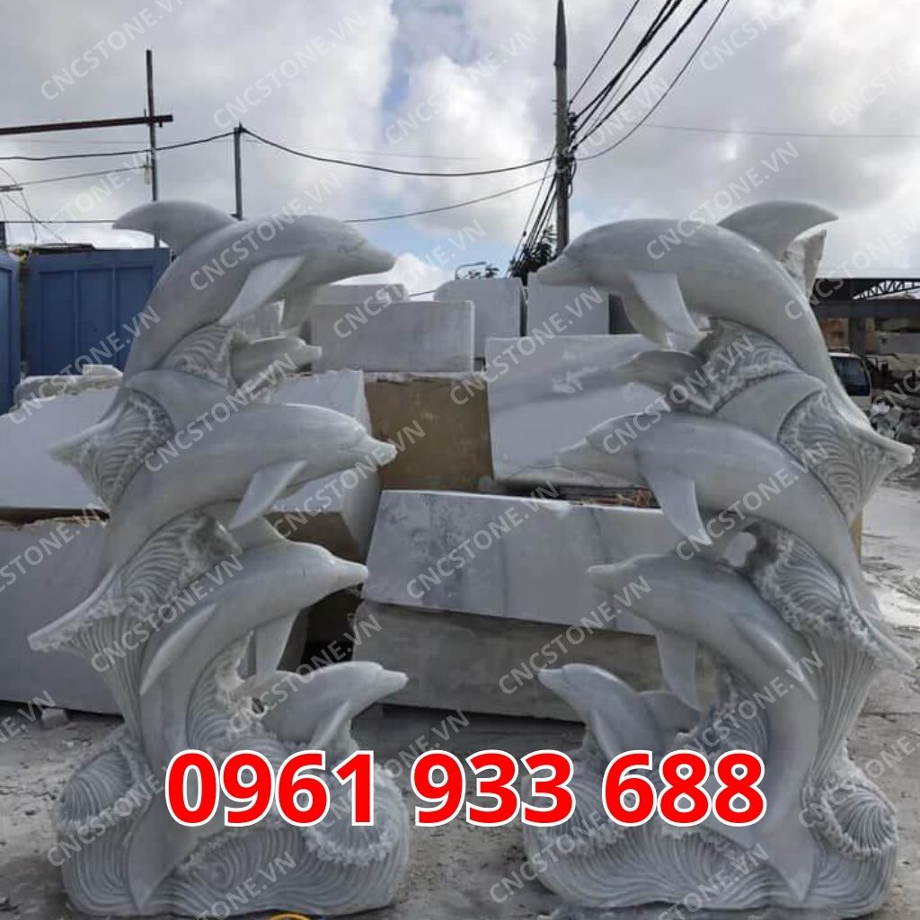 M214 Đài phun nước cá heo bằng đá đẹp